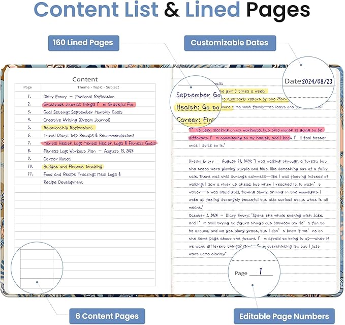 - Lay-Flat Design for Effortless Writing: The 180° lay-flat design makes writing a breeze for both left- and right-handed users. Whether you're jotting down quick notes or composing longer entries, this notebook provides total ease and comfort on any surface.