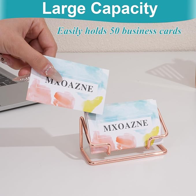- ๐๐๐ฉ๐๐ฌ ๐๐๐ซ๐ ๐ ๐๐๐ฉ๐๐๐ข๐ญ๐ฒ: The rose gold business card display can easily hold about 50 standard business cards. Clean modern lines and professional looking. Perfect fit for any desk office or home