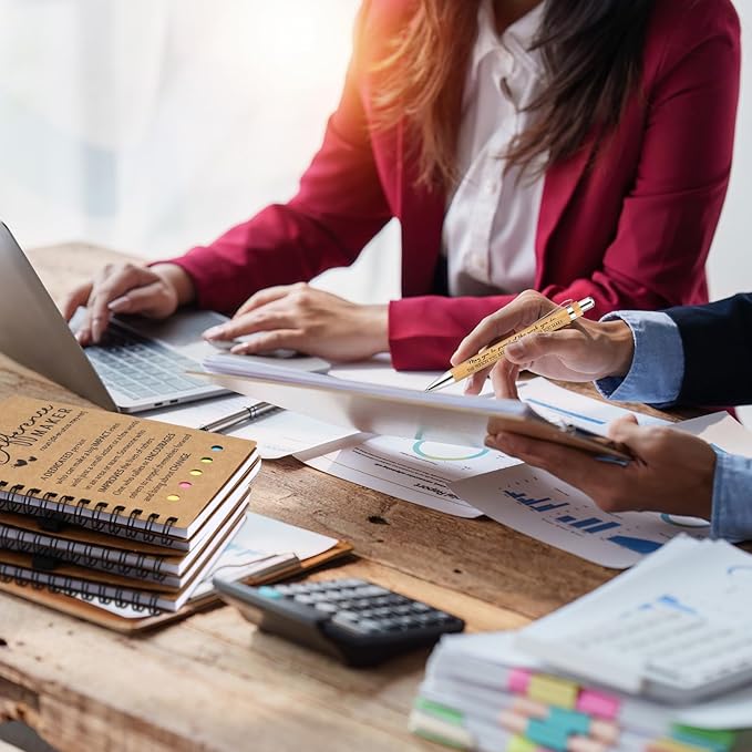 - Reliable Material: our inspirational spiral notebooks boast a robust kraft paper cover, durable and resistant to wear, which adequately protects the pages within; The ballpoint pens are made from sustainable bamboo, offering not only a comfortable writing experience but an ideal use, contributing to the care of our planet