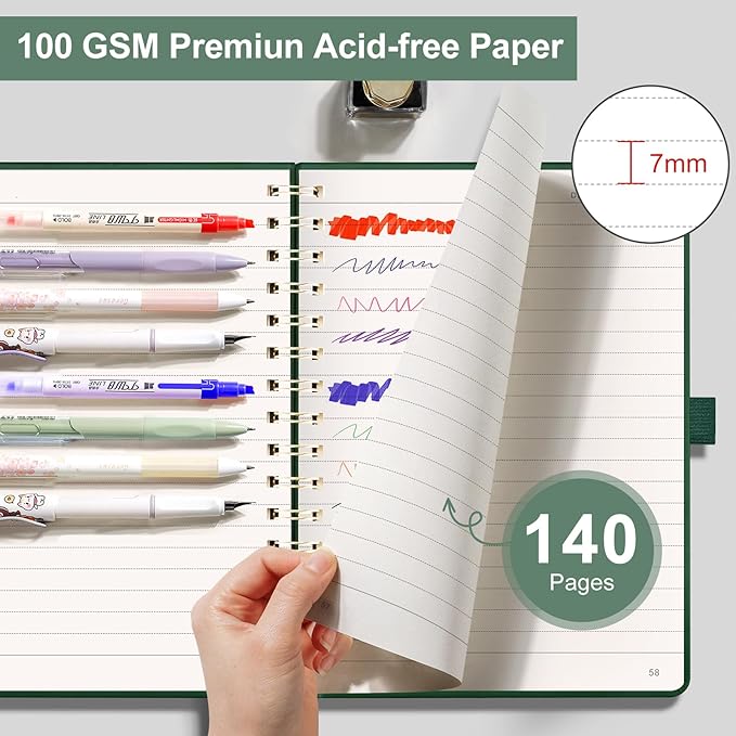 - Built to Last: Twin-wire spiral binding ensures 180° lay-flat use without page detachment, paired with a faux leather hardcover featuring sun-embossed patterns and rounded corners for professional aesthetics and daily commutes, backpack storage, and frequent flipping