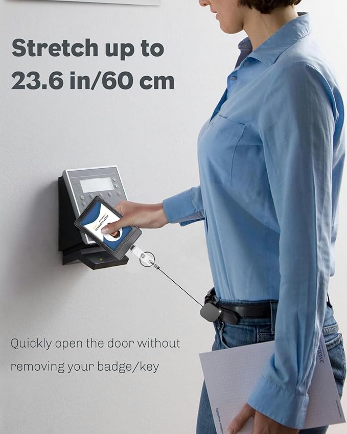 - Stronger Nylon Rope: The well-braided nylon rope can stretch up to 16.1 inches, making it easy to open the door without removing the badge or key. Quickly swipe your card to make punching in and out faster