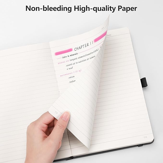 - LINED JOURNAL NOTEBOOK: RETTACY Lined Journal Notebook comes in a A5 (5.7'' × 8.3'') size, 192 Numbered Pages, waterproof and smooth Leather Hardcover, 7 mm college ruled writing space, 100 GSM Thick Acid-free Paper, Pen Holder, Elastic Closure Band, 2 Ribbon Bookmarks, Inner Pocket, Sticky Notes