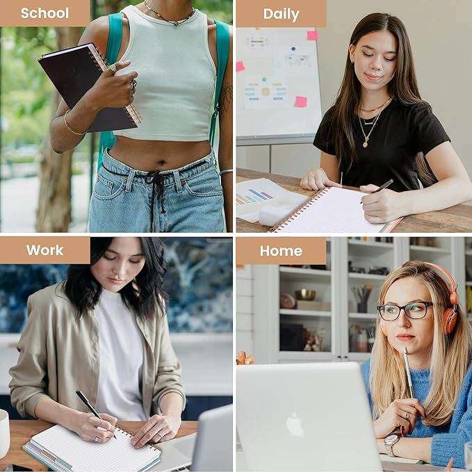 - HARDCOVER SPIRAL NOTEBOOK: Package includes a spiral notebook with 220 pages and the size is 5.5"x7.5", standard college ruled paper with 7.1mm spacing, 100gsm which avoids ink bleeding and can give you a good writing experience.