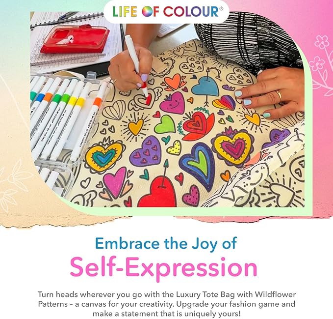 - Exclusive Luxury Tote Bag Bundle! Two exciting masterpieces await your personal touches in this color your own bag set. The joyful wildflower and whimsical heart patterns let you showcase your unique style and personality for all to see