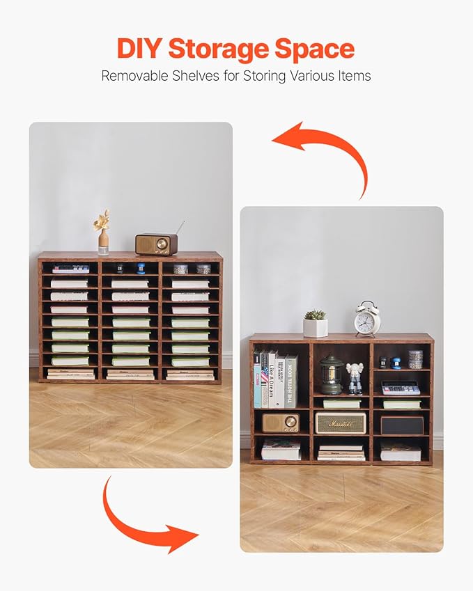 VEVOR Literature Organizer, 27 Compartments Office Mailbox with Removable Shelves, Wood Mailbox Sorter Particle Board Office Home Classroom Storage, File Sorter for File, Document, Paper, Dark Brown