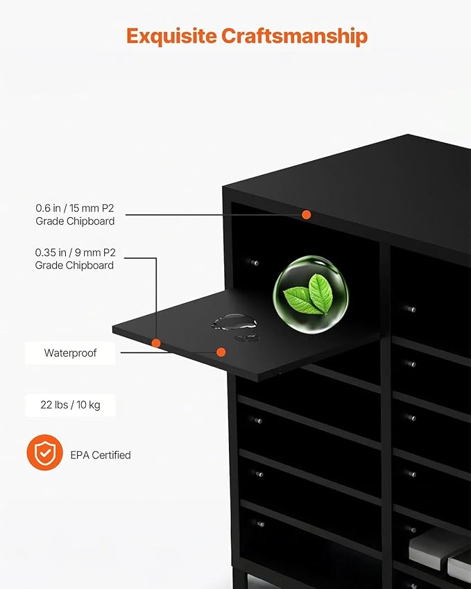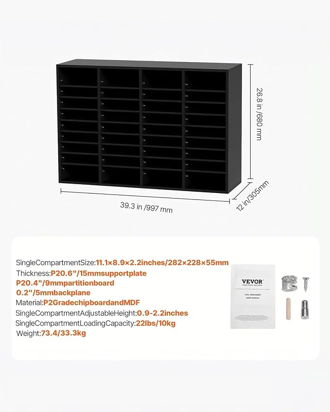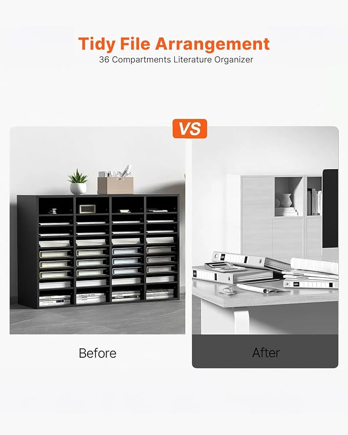 VEVOR Wood Literature Organizer, 36 Compartments, Mailboxes Slot with Removable Shelves, File Sorter for Office, Home, Classroom, or Mailrooms Organization, Black